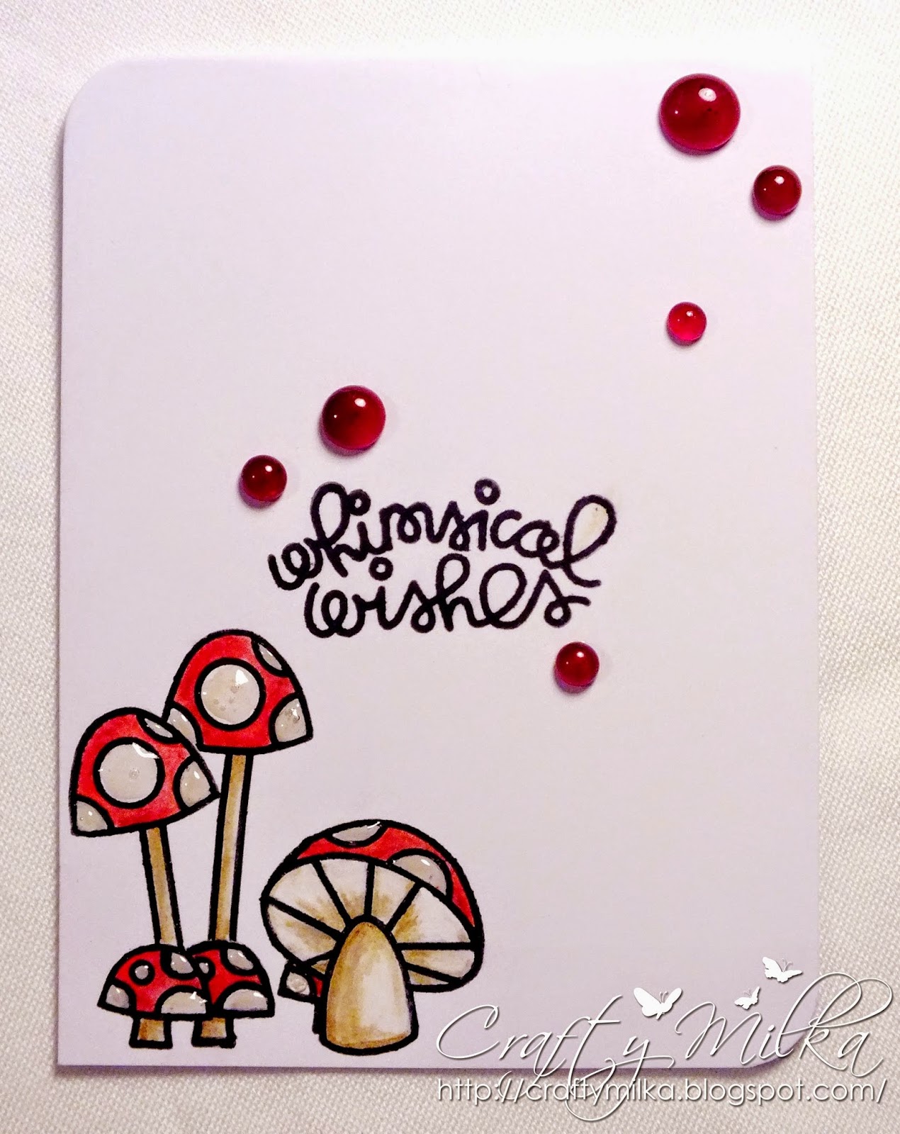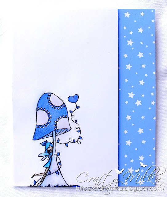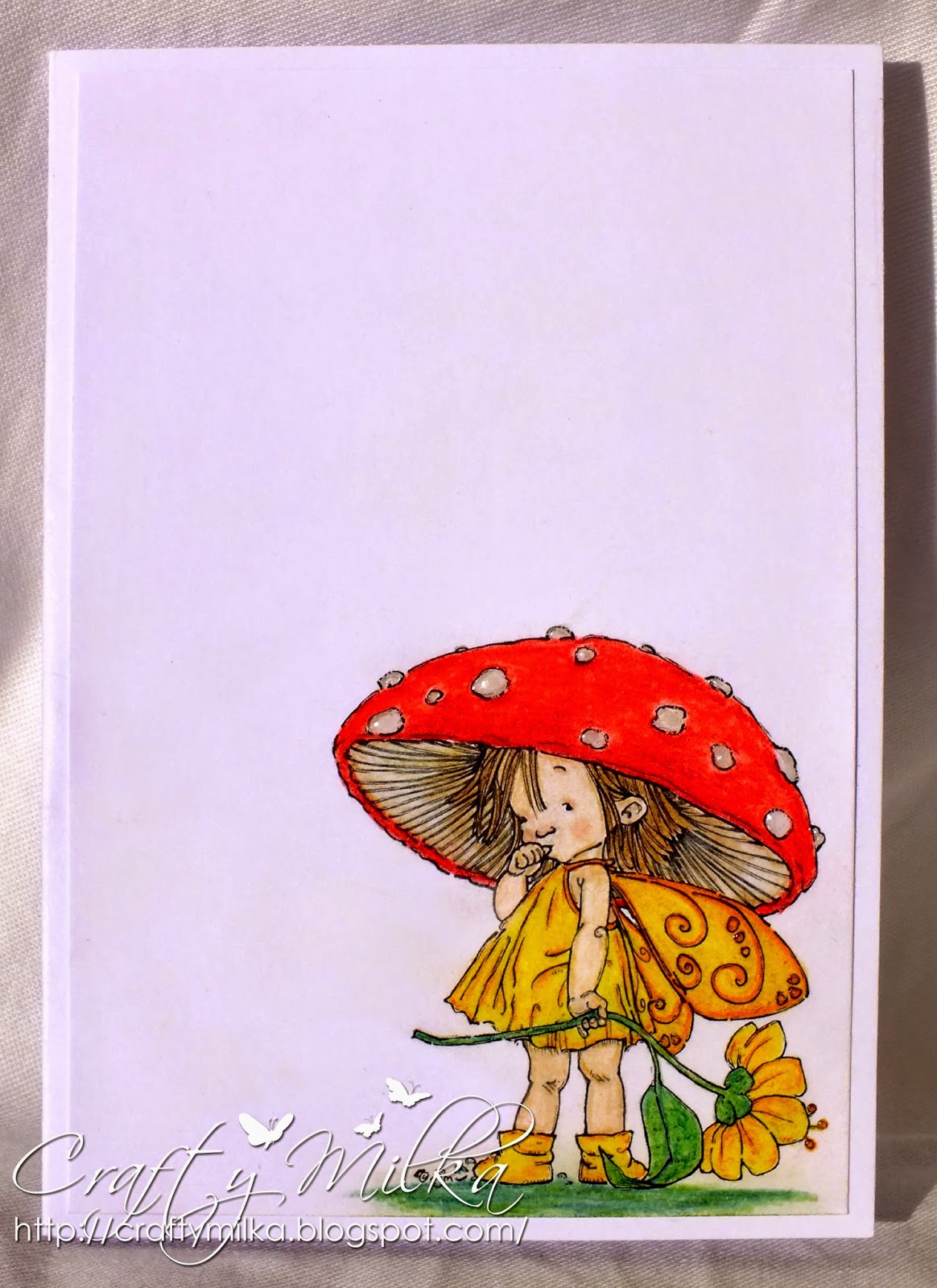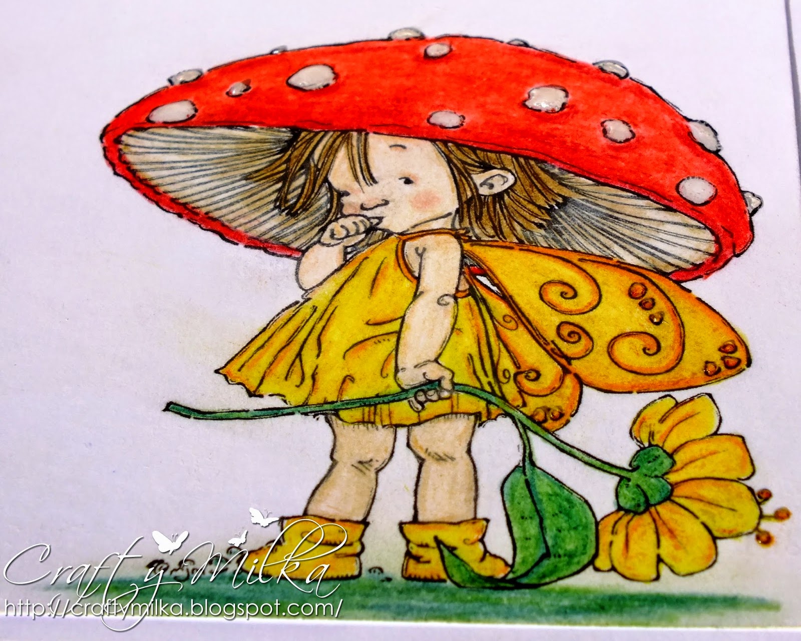 For this challenge I made a Fairy Wishes Card, using our sponsor's A Day For Daisies adorable image Painted Mushroom Top and Neil Gaiman's quote.