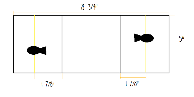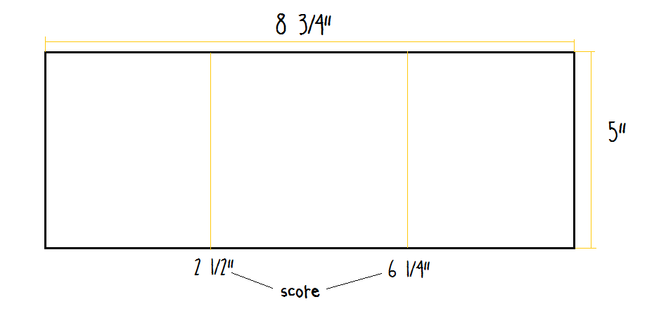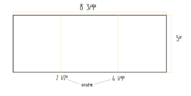 For a card base I used a white cardstock paper cut to 8 3/4" x 5". I scored the paper at 2 1/2" and 6 1/4", as shown at picture below, and folded paper along scored lines.